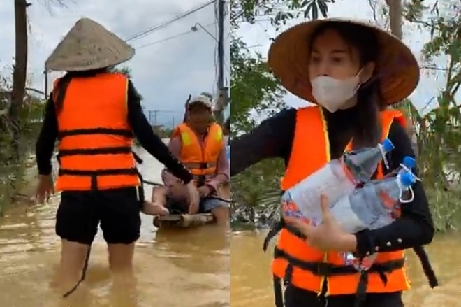 Thủy Tiên cùng đoàn cứu trợ vào vùng ngập lụt nặng những ngày qua.