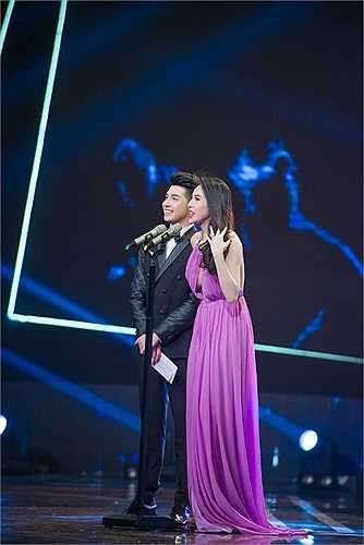 Thủy Tiên cùng Noo Phước Thịnh trên sân khấu.