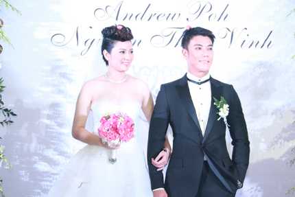 Tiệc cưới của “bà bầu” Music Box đã diễn ra tại khách sạn Sheraton, TP.HCM tối qua (27/7) sau nghi lễ diễn ra tại nhà riêng. Chú rể là Andrew Poh, kiến trúc sư người Singapore được nhiều người trầm trồ khen ngợi điển trai.