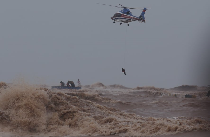 Trực thăng và đặc công hải quân cứu các thuyền viên gặp nạn.