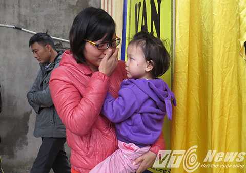 | Vợ anh Đạt đau xót ôm đứa con 2 tuổi khóc nức nở trước sự ra đi của người chồng hiền lành - Ảnh MK |