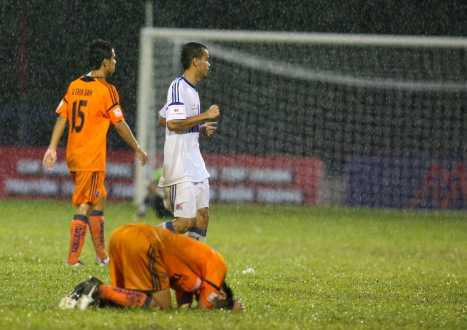 | Ít ai ngờ kết cục trận SLNA và Đồng Tháp tại sân Nhơn Sơn (Ảnh: Quang Minh). |