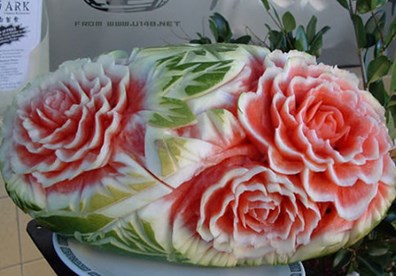 Tỉa hoa hồng bằng dưa hấu đơn giản mà tuyệt đẹp
