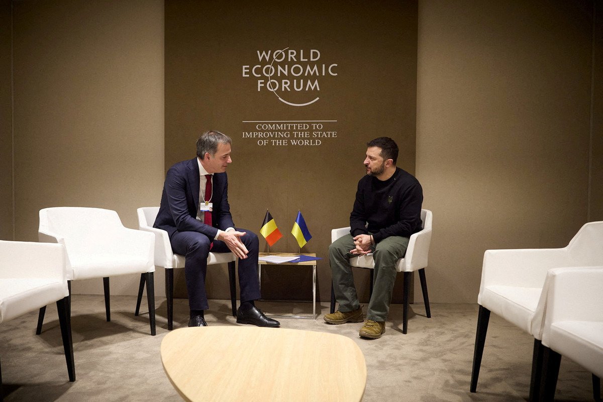 Tổng thống Ukraine Volodymyr Zelensky và Thủ tướng Bỉ Alexander De Croo tham dự cuộc họp bên thềm Diễn đàn kinh tế thế giới (WEF) ở Davos, hôm 16/1. (Ảnh: Reuters)