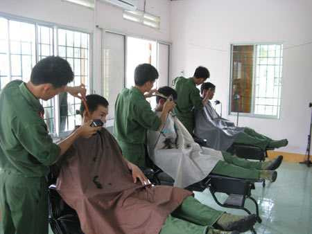 Cắt tóc xong, mọi “thường đế” lính vào đây đều được cạo mặt, váy tai với chi phí vô cùng hữu nghị: 8.000đ/lần đối với hạ sĩ quan, chiến sĩ và 10.000đ/lần với sĩ quan, quân nhân chuyên nghiệp. Theo Thiếu tá Lương Văn Hanh, trợ lý thanh niên Sư đoàn H (ĐT: 01656427917) thì đơn vị đã ban hành quy chế: Tất cả nam quân nhân phải cắt tóc tập trung tại nhà cắt tóc Sư đoàn và các trung đoàn, mỗi tháng cắt tóc ít nhất một lần.