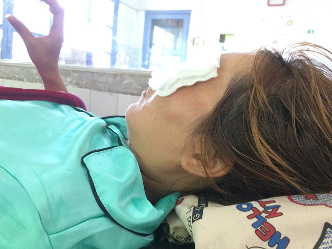 Tuy nhiên chỉ 5 phút sau tiêm, mi mắt trái chị sụp xuống, da vùng mũi và trán thâm đen và ngày càng lan rộng. Mắt trái nạn nhân dần yếu và mờ hẳn sau khi về nhà.