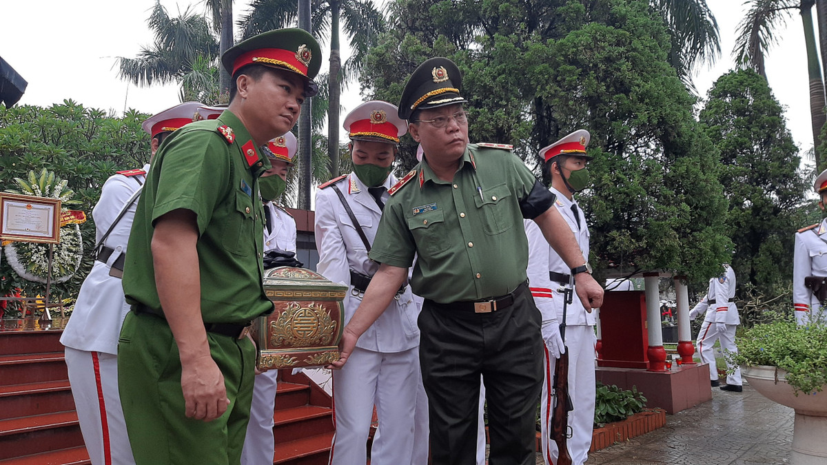 Trung tướng Nguyễn Hải Trung, Giám đốc Công an TP Hà Nội đưa hài cốt liệt sĩ đến nơi an táng.