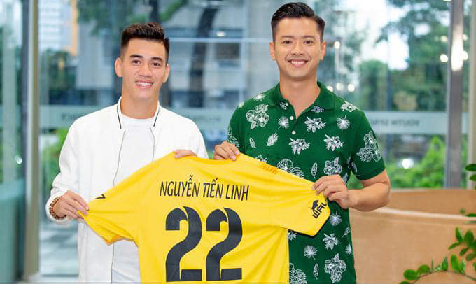 Hình ảnh Nguyễn Tiến Linh gia nhập FC Nghệ Sỹ do siêu mẫu Hồ Đức Vĩnh sáng lập.