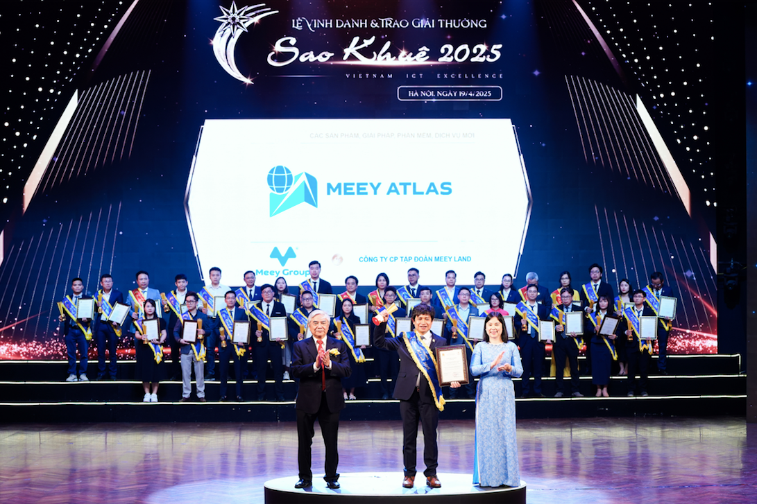 Ngày 19/4, tại lễ trao giải Sao Khuê 2025 được tổ chức tại Hà Nội, Công ty Cổ phần Tập đoàn Meey Land (Meey Group) đã vinh dự lần thứ 3 được xướng tên với sản phẩm mới Meey Atlas - Nền tảng bản đồ số toàn diện cho người Việt.