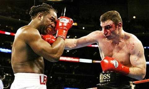 Vitaly Klitschko trong trận đấu nổi tiếng với Lennox Lewis.