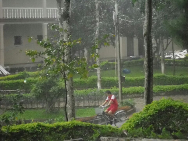 | Mặc thời tiết tại Gia Lai mưa lớn, Tuấn Anh vẫn cố gắng đạp xe đúng theo giáo án của các bác sĩ để chấn thương gối sớm hồi phục. |
