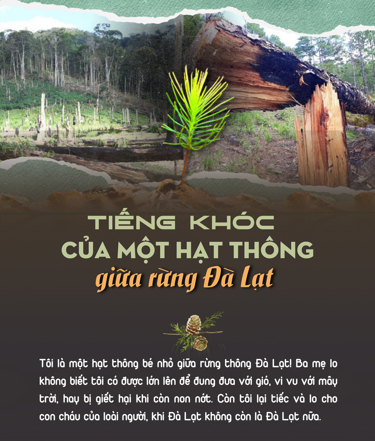 Cách đây gần 2 năm, ngay sát tỉnh lộ 725 đoạn qua đèo Tà Nung, hàng trăm hàng nghìn anh em tuổi đời hàng chục năm của tôi đã bị khoan lỗ, đổ hóa chất độc làm lá héo úa, nhựa trắng - máu của nhà thông liên tục chảy…