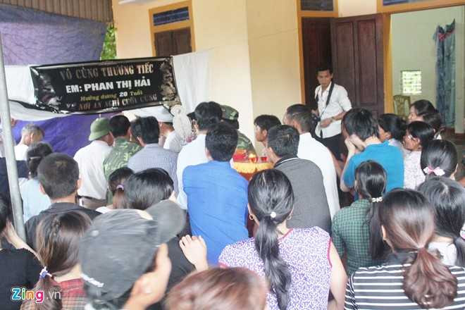 Hai nữ sinh là bạn học của Phan Thị Hải khóc lóc, ôm lấy quan tài chứa thi thể bạn của mình. "Hải ơi, sao bạn lại bỏ bạn bè, mọi người mà đi. Về đi Hải ơi!", một trong hai người bạn nức nở.
