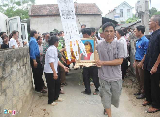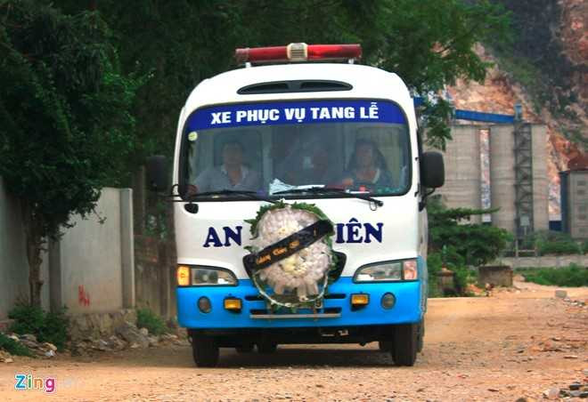 17h45 ngày 3/7, chiếc xe lễ tang đưa thi thể em Phan Thị Hải về quê nhà ở xóm 9, xã Hội Sơn (Anh Sơn, Nghệ An). Trước đó, khi hay tin con gặp nạn, bố của nữ sinh đại học Ngoại thương này là ông Phan Văn Phùng (47 tuổi) cùng vài người thân đã nén đau ra Quảng Ninh.