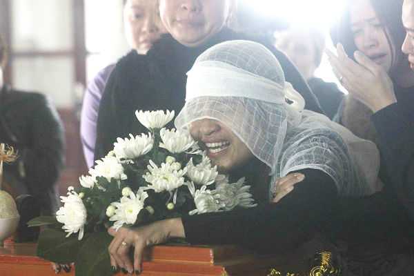 Hàng trăm người có mặt tại Nhà tang lễ sáng nay không thể cầm lòng khi chứng kiến hai người phụ nữ ôm chặt lấy 2 chiếc quan tài gào khóc thảm thiết. Đó chính là bà Trần Thị Dung - vợ ông Trần Việt Tiến và người con dâu Nguyễn Thị Thi (tên thường gọi là Ly, mẹ đẻ cháu Hân).