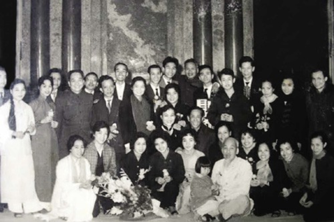 Bác Hồ với các nghệ sĩ Đài Tiếng nói Việt Nam (Ảnh tư liệu)