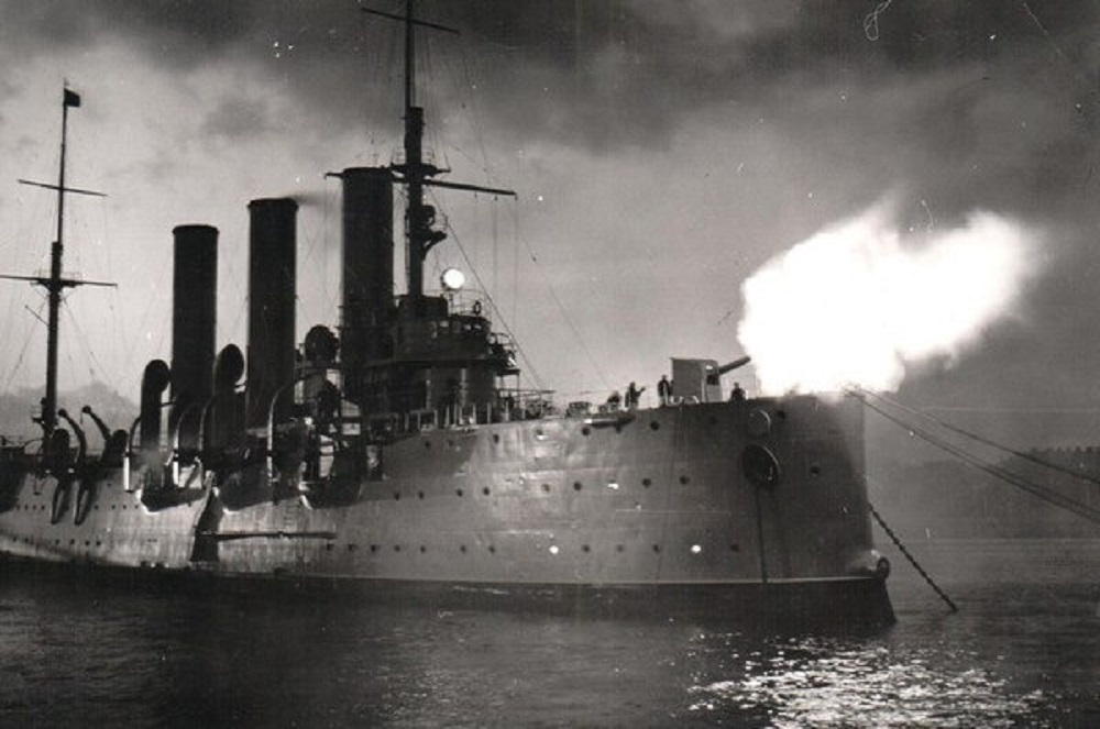 Tiếng súng của tuần dương hạm Rạng Đông đã tuyên bố với toàn nhân loại về một kỷ nguyên mới, một Nhà nước xã hội chủ nghĩa đầu tiên trên thế giới đã ra đời. (Ảnh: Sputnik)