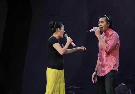 | Dương Triệu Vũ và Thanh Thúy trong buổi tổng duyệt. |