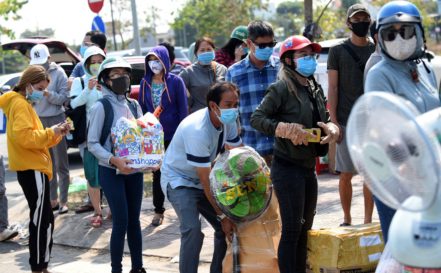 Dòng người xếp hàng đợi đến lượt giao đồ tiếp tế cho người thân. (Ảnh: Duyên Phan)