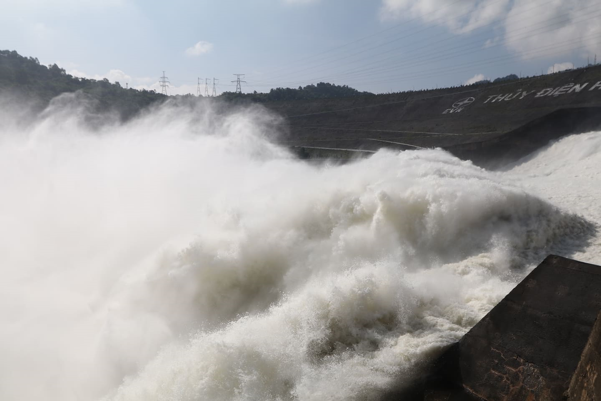 Hồ Hoà Bình tiếp tục duy trì 1 xả đáy và sẵn sàng phương án mở thêm cửa xả thứ 2 khi có lệnh.