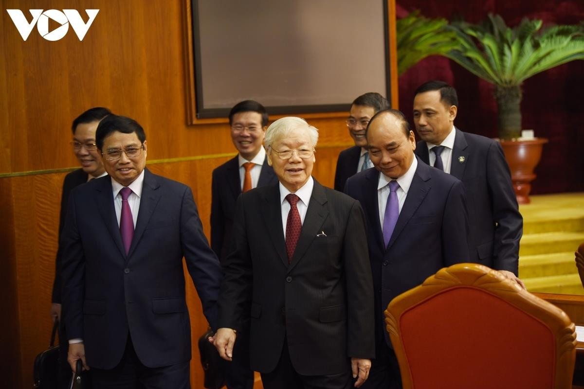Các lãnh đạo chủ chốt tham dự Hội nghị Trung ương 5.