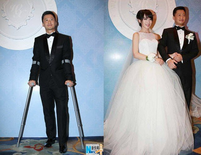 Chú rể Ngô Kinh phải chống nạng trong hôn lễ