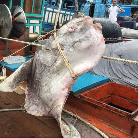 Anh Huân cho biết trước đó, trong lúc đi đánh bắt cá trên biển tại khu vựcvùng biển Vịnh Bắc bộ, con cá mặt trăng lớn này đã vướng vào lưới của tàu cá của anh Huân. Do cá đã chết nên các ngư dân đã dùng máy tời mới đưa con cá được lên tàu và cho xuống khoang tàu ướp lạnh. Cũng trong chuyến đi biển này, tàu cá của anh Huân cũng đã đánh bắt được một con cá mặt trăng có trọng lượng khoảng hơn 2 tạ, sau khi đưa lên bờ phát hiện con cá còn sống thì thả lại xuống biển.