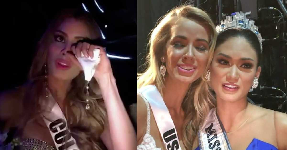 Không chỉ vậy, những người đẹp khác của cuộc thi đều vây quanh, ôm động viên và đồng thanh 'Chúng tôi yêu bạn, Hoa hậu Colombia'.