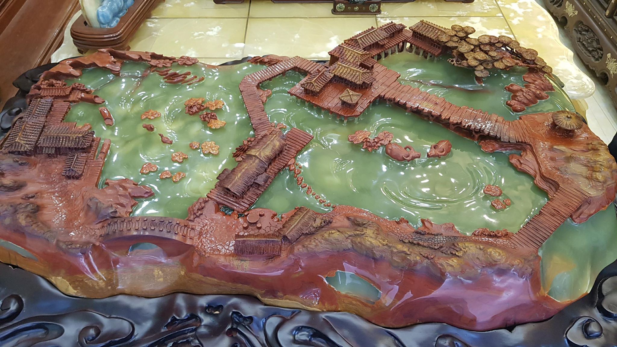 Cùng chiêm ngưỡng cận cảnh tiêu cảnh "chốn bồng lai" bằng đá quý, giá 600 triệu đồng.