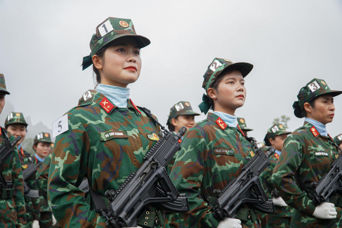 Các chiến sĩ thuộc Khối nữ Lực lượng Gìn giữ hoà bình tham gia diễu binh, diễu hành Kỷ niệm 50 năm Ngày giải phóng miền Nam.
