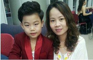 | Hwang Min Woo và người mẹ Việt Nam trong một chương trình truyền hình. |