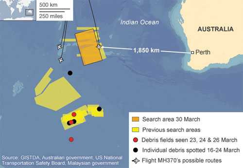 Sau những nỗ lực tìm kiếm đa quốc gia trong hơn 3 tuần, chuyến bay MH370 chở 239 người biến mất không dấu vết hôm 8/3 vẫn chưa có dấu hiệu được tìm thấy.