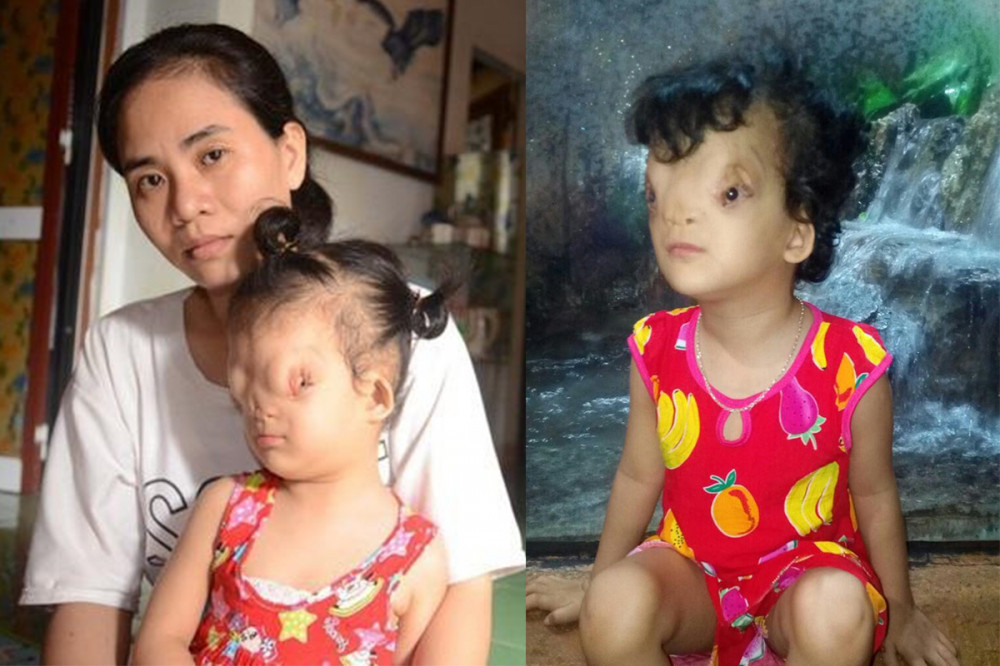 Cô bé Tôn Nữ Hoàng Dung (4 tuổi, Quảng Bình) khi vừa sinh ra đã mang dị tật hiếm gặp ở xương sọ, phần não tràn ra vùng mũi, khiến mắt bị đẩy xuống, lồi ra ngoài, làm ảnh hưởng đến ngoại hình và thị lực. Mắt trái của bé hoạt động bình thường, trong khi mắt phải bị đục giác mạc.