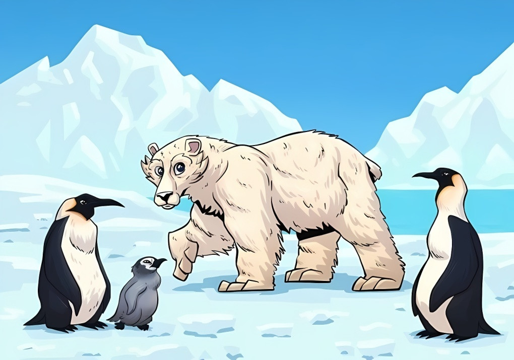 Bức tranh ghi lại hình ảnh của chú gấu Bắc Cực cùng ba con chim cánh cụt. Thoạt nhìn, bức ảnh trông ổn, nhưng thực tế không phải vậy. Bức tranh có một lỗi sai duy nhất, không chỉ đòi hỏi tinh mắt mà tư duy phải thật nhạy bén mới có thể phát hiện ra.
