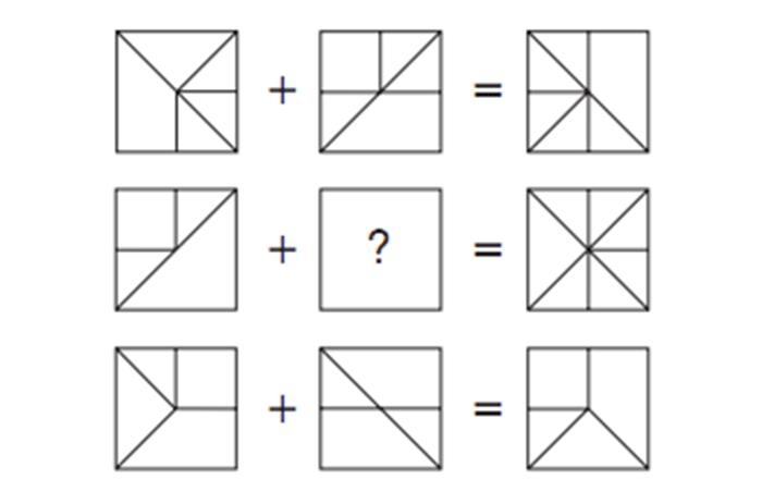 Trong số các hình từ A đến E bên dưới, có một hình là đáp án đúng điền vào hình vuông có dấu hỏi chấm bên trên.