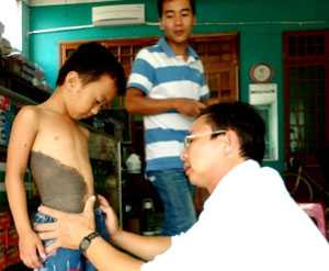 Theo chẩn đoán ban đầu của bác sĩ Phan Đình Mỹ, cháu Phong mắc chứng bệnh “bớt tăng sắc tố”. Đây là loại bệnh ngoài da hay gặp với biểu hiện là các bớt màu xanh đen, nâu hay nâu đen, có thể xuất hiện ở mặt như bớt ở vùng cổ, phần trên cánh tay, vùng thắt lưng, mông...