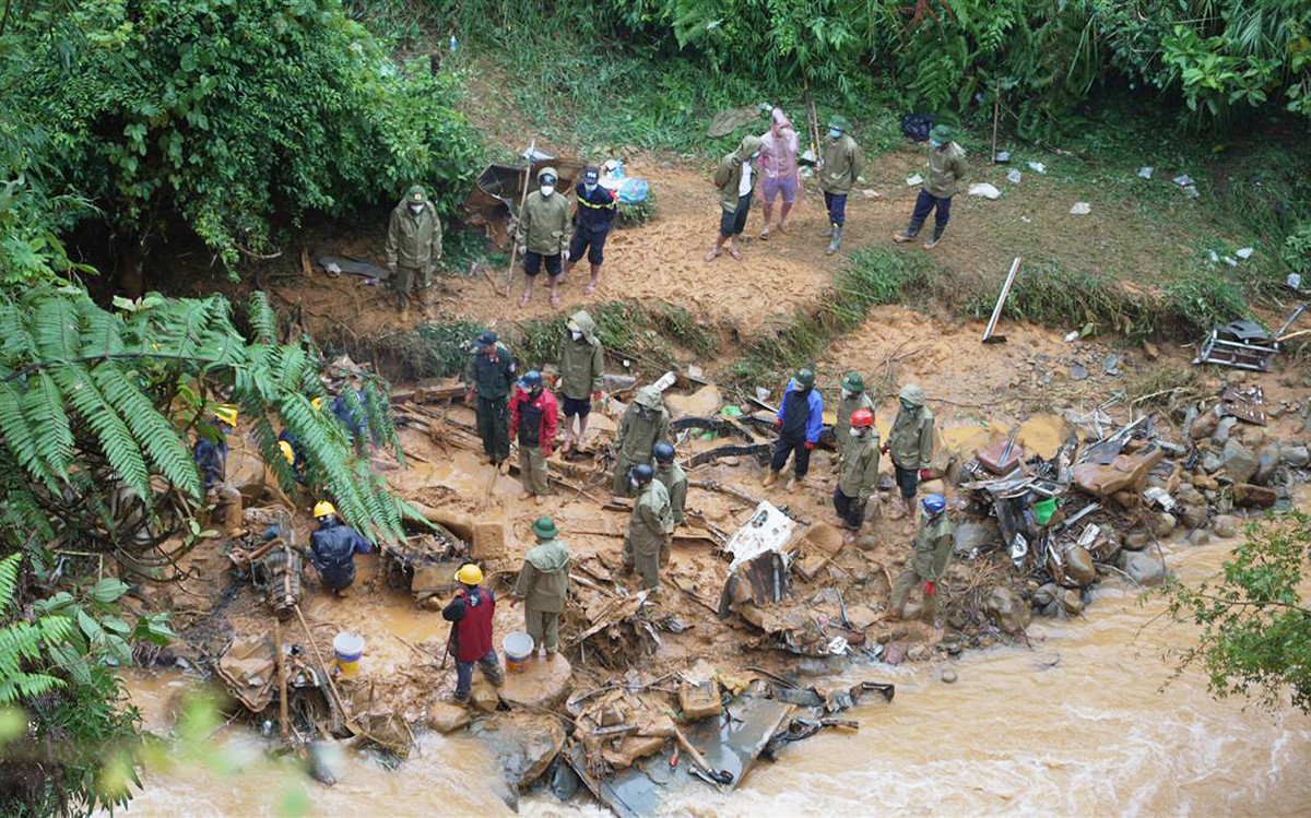 Theo đại diện Cục CSGT, trước và tại điểm sạt lở gây thiệt hại lớn về người và phương tiện là hai điểm sạt lở khác chặn trước và sau, thời tiết mưa lớn, sóng điện thoại không có nên việc tiếp cận hiện trường của lực lượng chức năng vô cùng khó khăn, vất vả, phải dùng máy xúc và sức người để san gạt khối lượng lớn đất đá chặn đường.