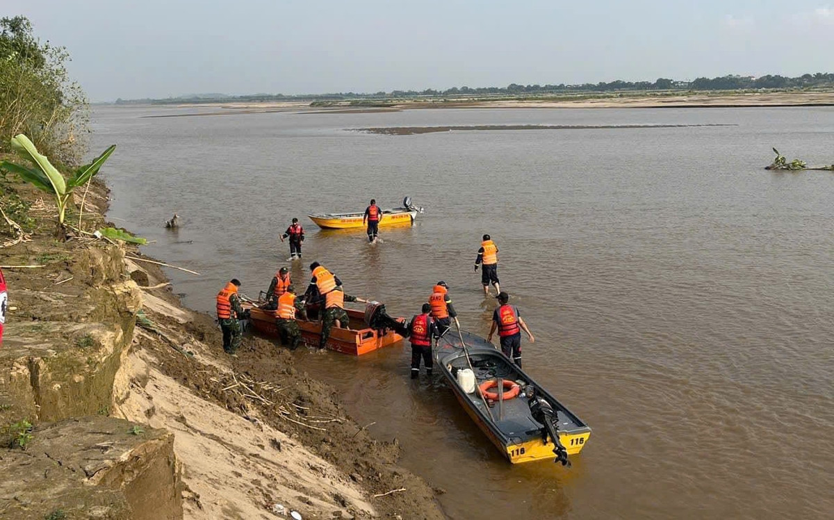 Sau 2 ngày liên tục tìm kiếm, các lực lượng chức năng đã tìm thấy thi thể 5 học sinh mất tích trên sông Hồng. (Ảnh: Công an tỉnh Phú Thọ)