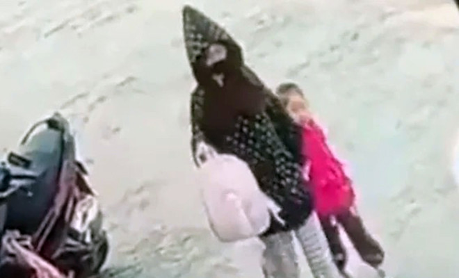 Hình ảnh bé gái bị người phụ nữ dẫn đi. (Ảnh cắt từ clip)