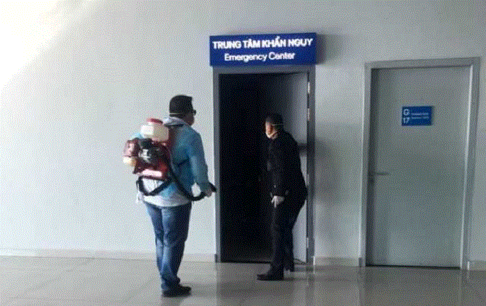 Trung tâm Kiểm dịch Y tế quốc tế Hải Phòng khử trùng toàn bộ khu vực ga đến nội địa, quốc tế cùng với phòng lưu ca nghi ngờ nhiễm virus corona.