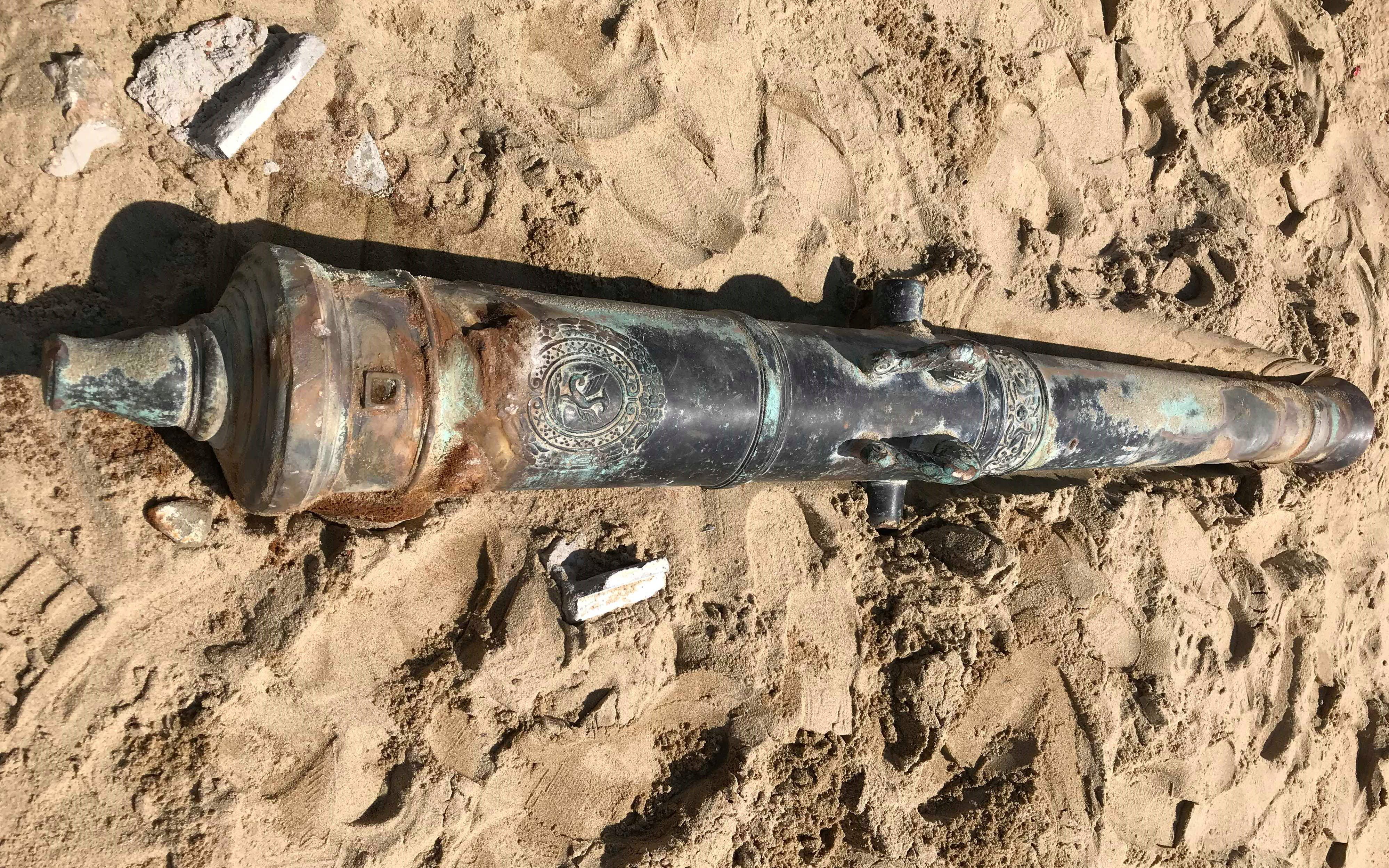 Khẩu thần công có niên đại 200 năm được phát hiện ở bờ biển Đà Nẵng. (Ảnh: Đ.N)