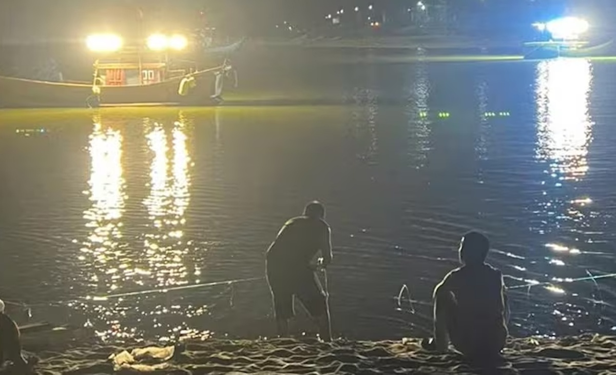 Lực lượng chức năng xuyên đêm tìm kiếm và đến sáng mới tìm thấy thi thể 2 học sinh mất tích khi tắm sông Dinh. (Ảnh: BT)