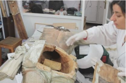 Theo National Geographic, trong khi khôi phục bức tượng từ thế kỷ 18, các nhà sử học Tây Ban Nha tìm thấy vật dụng có thể là “chiếc hộp thời gian” được giấu trong bức tượng.