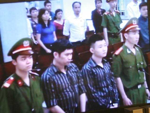 | Nguyễn Mạnh Tường và Đào Quang Khánh tại phiên tòa xét xử sơ thẩm ngày 14/4 |