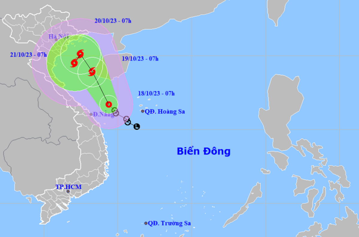 Theo đó, hồi 7 giờ ngày 18/10, vị trí tâm áp thấp nhiệt đới ở vào khoảng 16,7 độ Vĩ Bắc; 109,4 độ Kinh Đông, cách quần đảo Hoàng Sa khoảng 240 km về phía Tây Tây Bắc, cách đất liền khu vực Quảng Trị-Quảng Ngãi khoảng 170km về phía Đông.