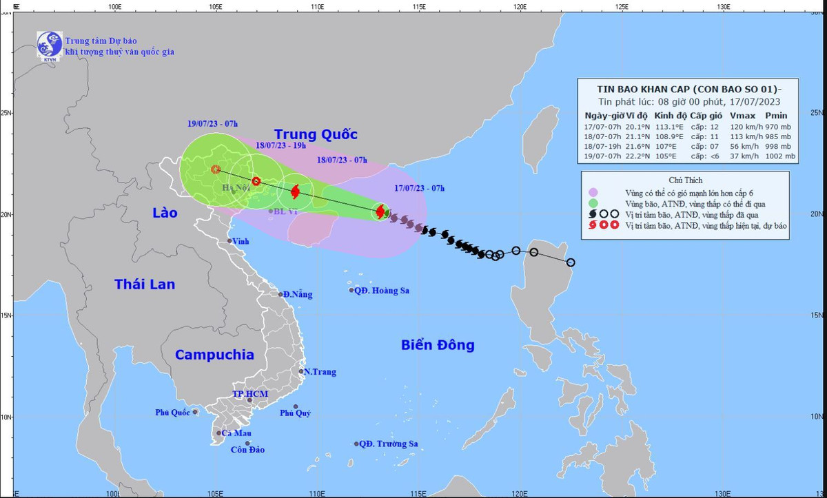 Tin bão khẩn cấp 17/7 cơn bão số 1