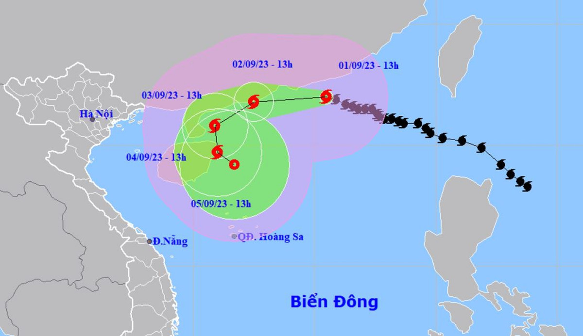 Dự báo chi tiết bão số 3 từ 13h ngày 2/9 đến 13h ngày 4/9.