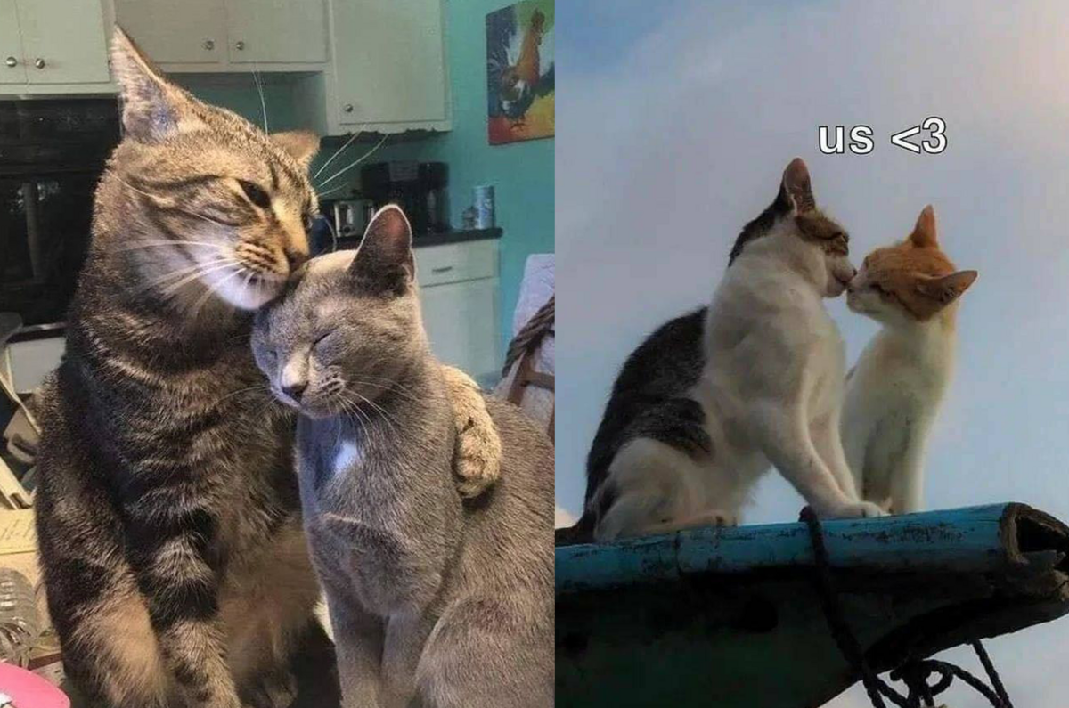 Bắt quả tang một đôi mèo đang lén lút hẹn hò.
