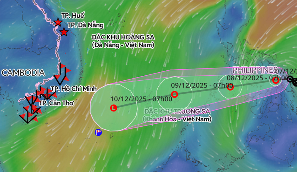 Khoảng 7h ngày 8/12, áp thấp nhiệt đới trên vùng biển phía Đông Bắc đảo Palawan (Philippines), đổi hướng Tây Tây Nam, mỗi giờ đi được 15-20km, duy trì cường độ cấp 6, giật cấp 8.