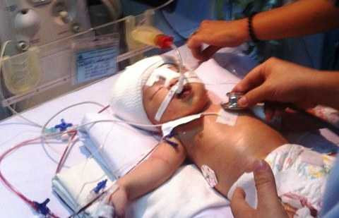 Theo Ths-BS Phạm Thị Minh Tâm - Trưởng khoa Hồi sức sơ sinh, sau hai ngày nhập viện bé vẫn còn hôn mê, thở máy, chi ấm, môi hồng, tim đều rõ có lúc co giật nhẹ, mạch rõ 160 lần/phút.